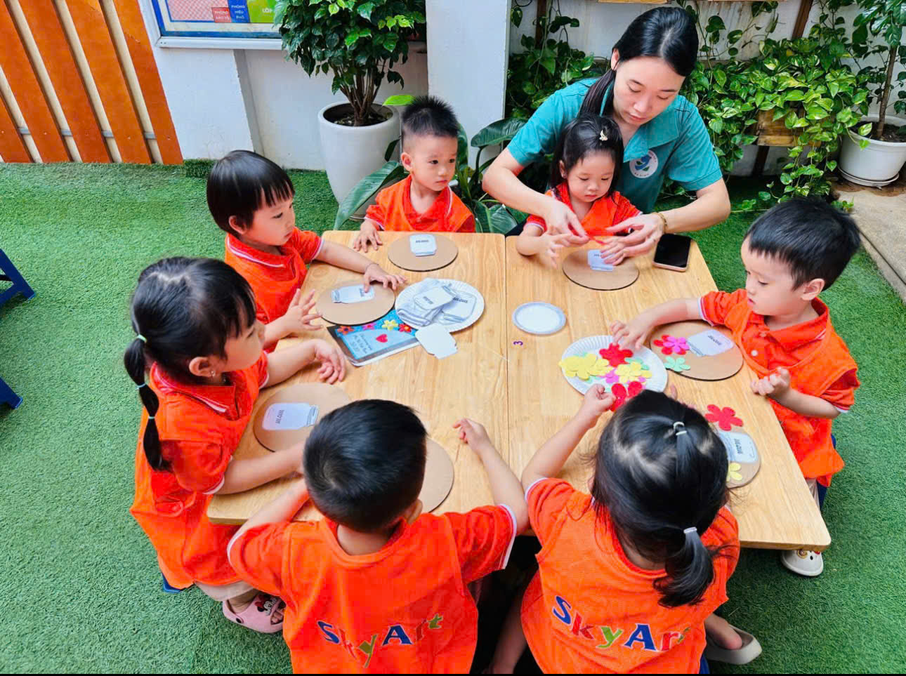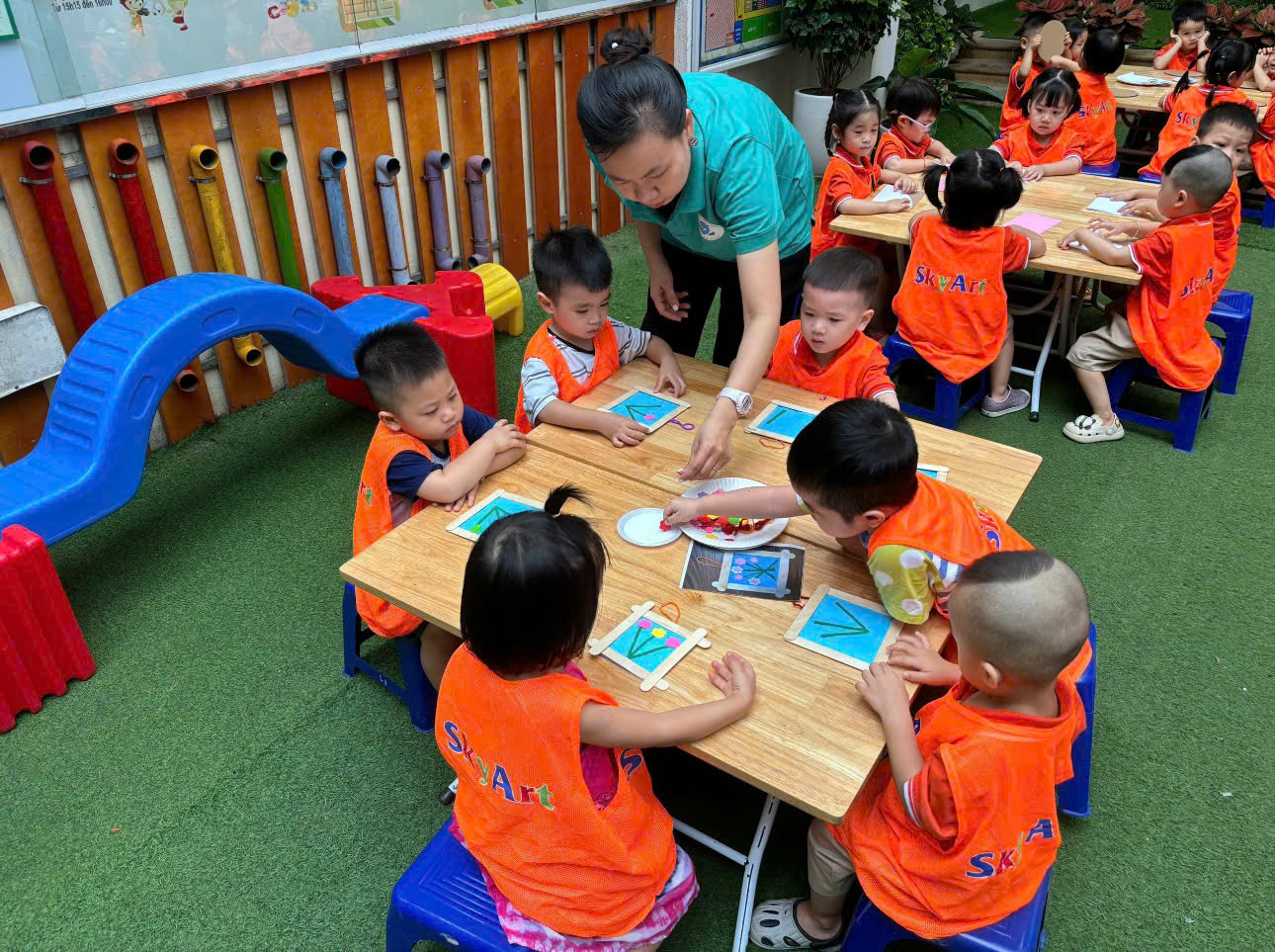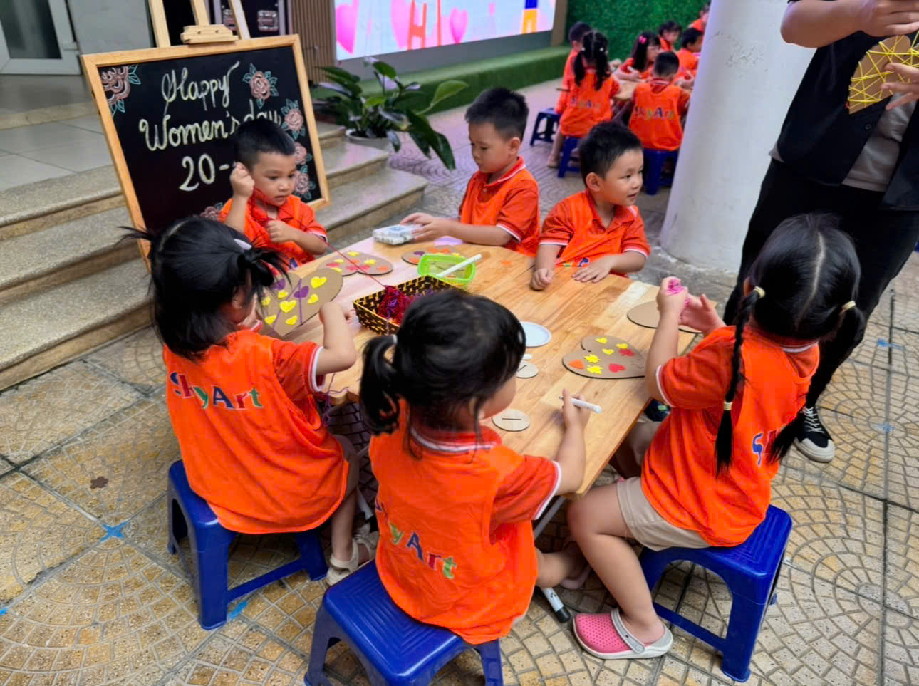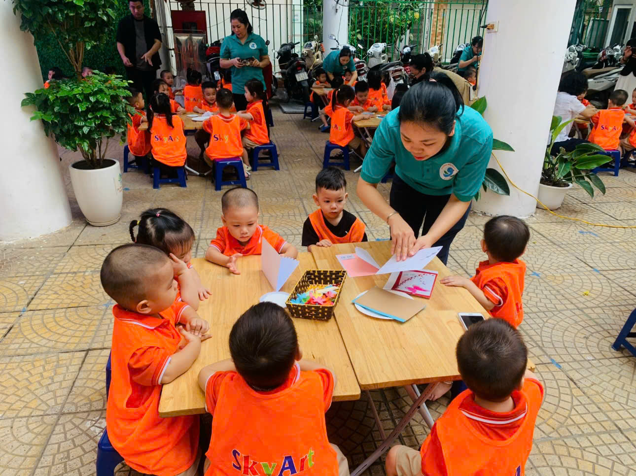 Trường Mẫu giáo số 9 kết hợp với trung tâm nghệ thuật Sky Art đã tạo ra một sân chơi giúp cho trẻ sáng tạo ra những món quà ý nghĩa chứa đựng tình yêu dành cho mẹ và cô.