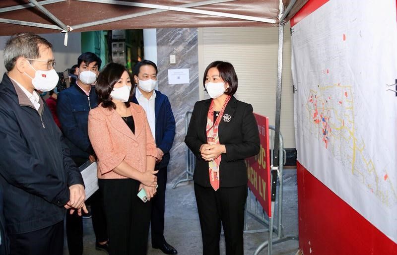 Phó Bí thư Thường trực Thành ủy Nguyễn Thị Tuyến kiểm tra công tác phòng, chống dịch Covid-19 trên địa bàn quận Ba Đình.