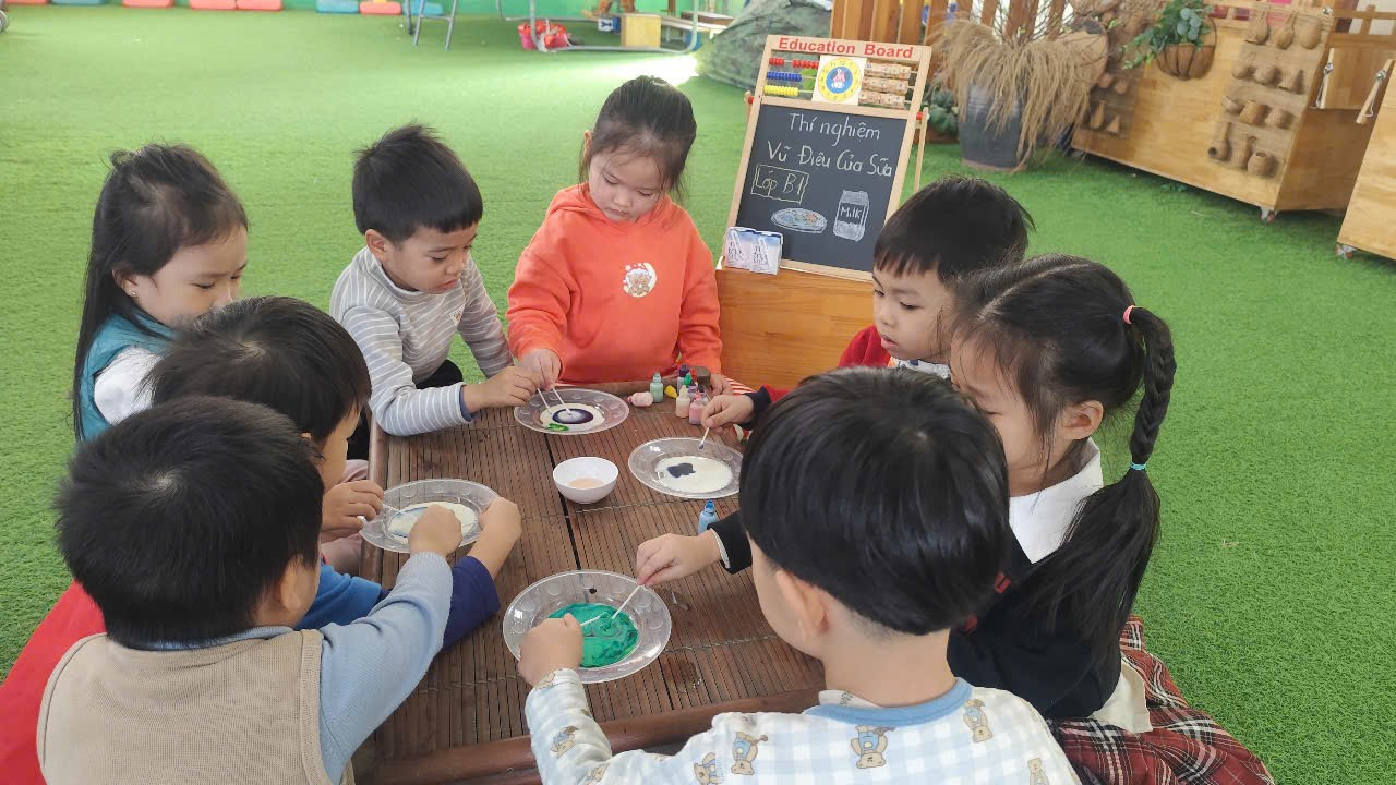 Khám phá khoa học là một trong những chiến lược quan trọng giúp phát triển tư duy và năng lực của trẻ. Các con không chỉ học hỏi những kiến thức khoa học qua hình ảnh, lời kể mà còn trực tiếp trải nghiệm, khám phá qua những thí nghiệm vui.