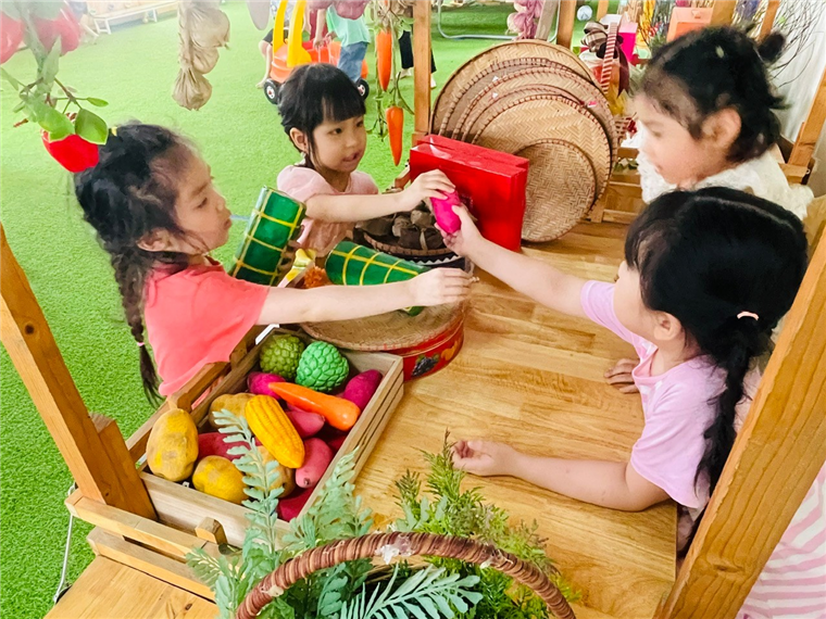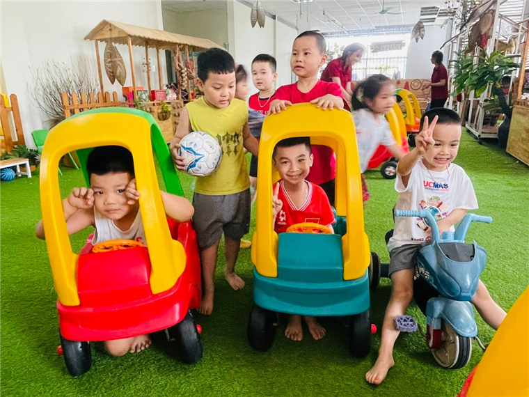 Ngoài thí nghiệm vô cùng thích thí thú, các con còn được chơi các trò chân vận động như “Bịt mặt bắt dê”, “ Mèo đuổi chuột”…, chơi theo sở thích các trò chơi có sắn ở sân trường tầng 5 như chơi với sỏi, ô tô tập lái, gian hàng …