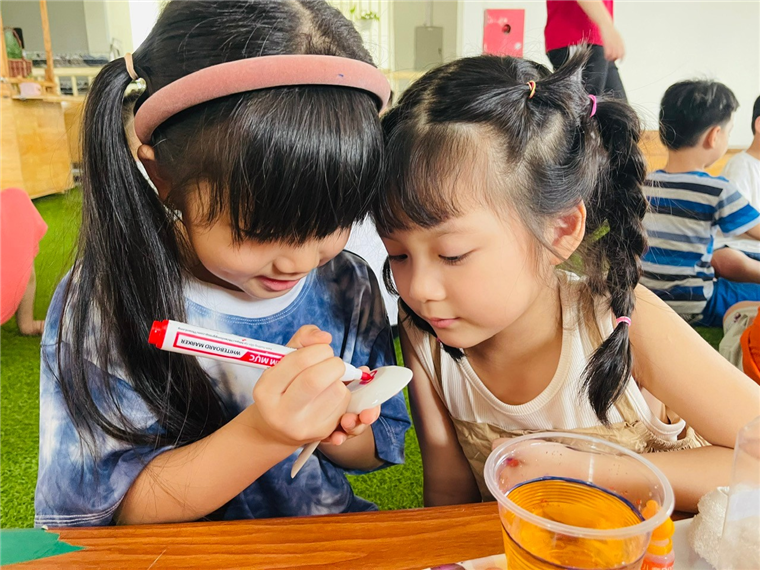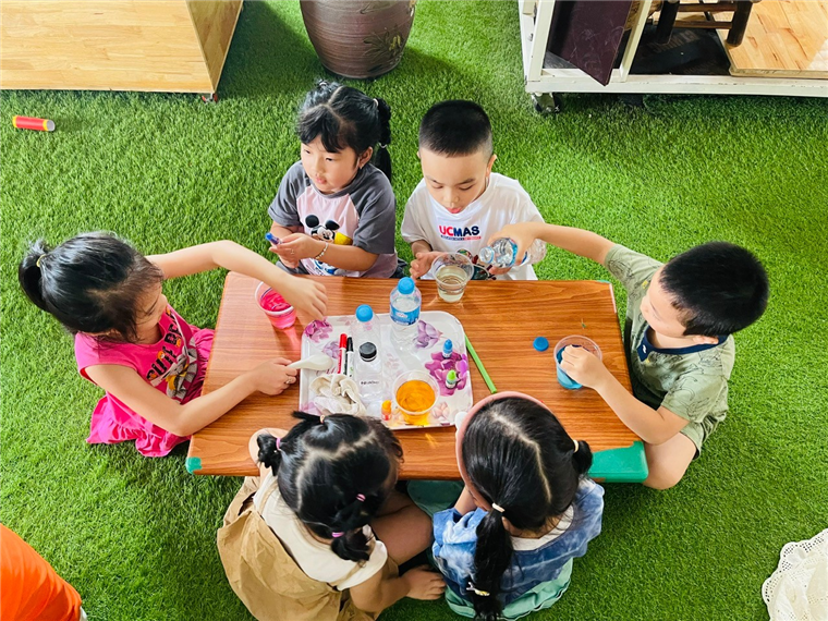 Việc kết hợp thí nghiệm khoa học vui với không gian ngoài trời luôn mang lại những trải nghiệm học tập phong phú và đáng nhớ cho trẻ. Hoạt động thí nghiệm tạo hình trong nước ngoài trời không chỉ giúp trẻ 5-6 tuổi lớp A2 có những giờ phút học tập vui vẻ, khám phá kiến thức khoa học một cách trực quan, sinh động, mà còn nuôi dưỡng tình yêu với nghệ thuật, thiên nhiên và khơi gợi niềm đam mê sáng tạo không ngừng. Đây thực sự là một "điểm chạm" tuyệt vời, nơi khoa học, nghệ thuật và thiên nhiên giao hòa, mang đến cho trẻ những trải nghiệm tuổi thơ đầy màu sắc và ý nghĩa. Ngoài những lúc học tập nghiêm túc các con còn được hòa mình vào thiên nhiên, chơi những trò chơi yêu thích ở không gian mở đầy đủ ánh sáng tự nhiên và được thiết kế rất đẹp ở tầng 5 trường Mẫu Giáo Số 9. Chúc các con có thật nhiều trải nghiệm đẹp ở trường MG Số 9 thân yêu nhé!