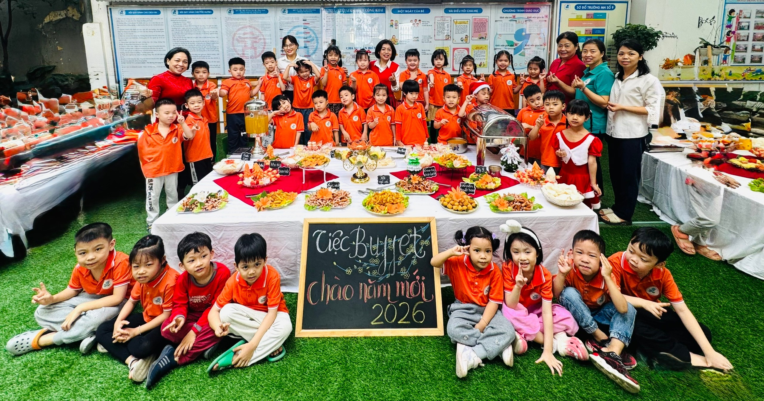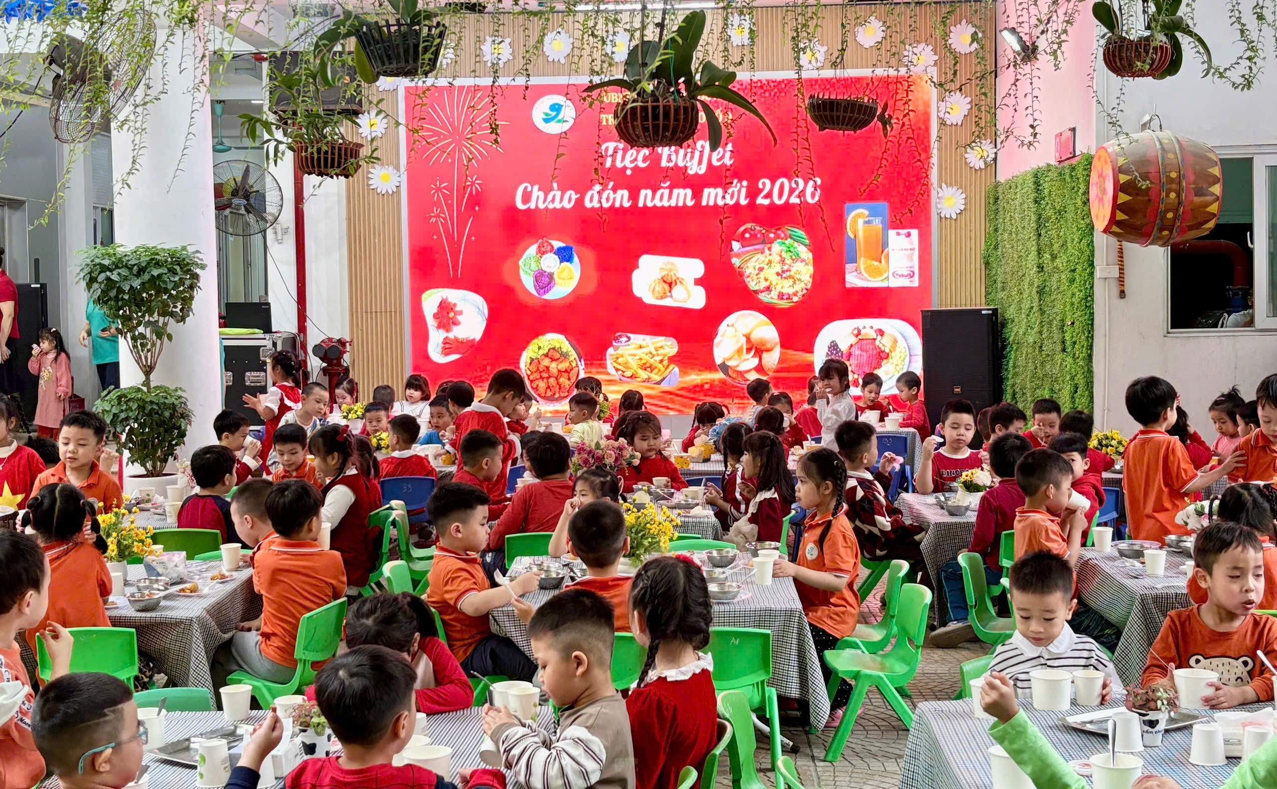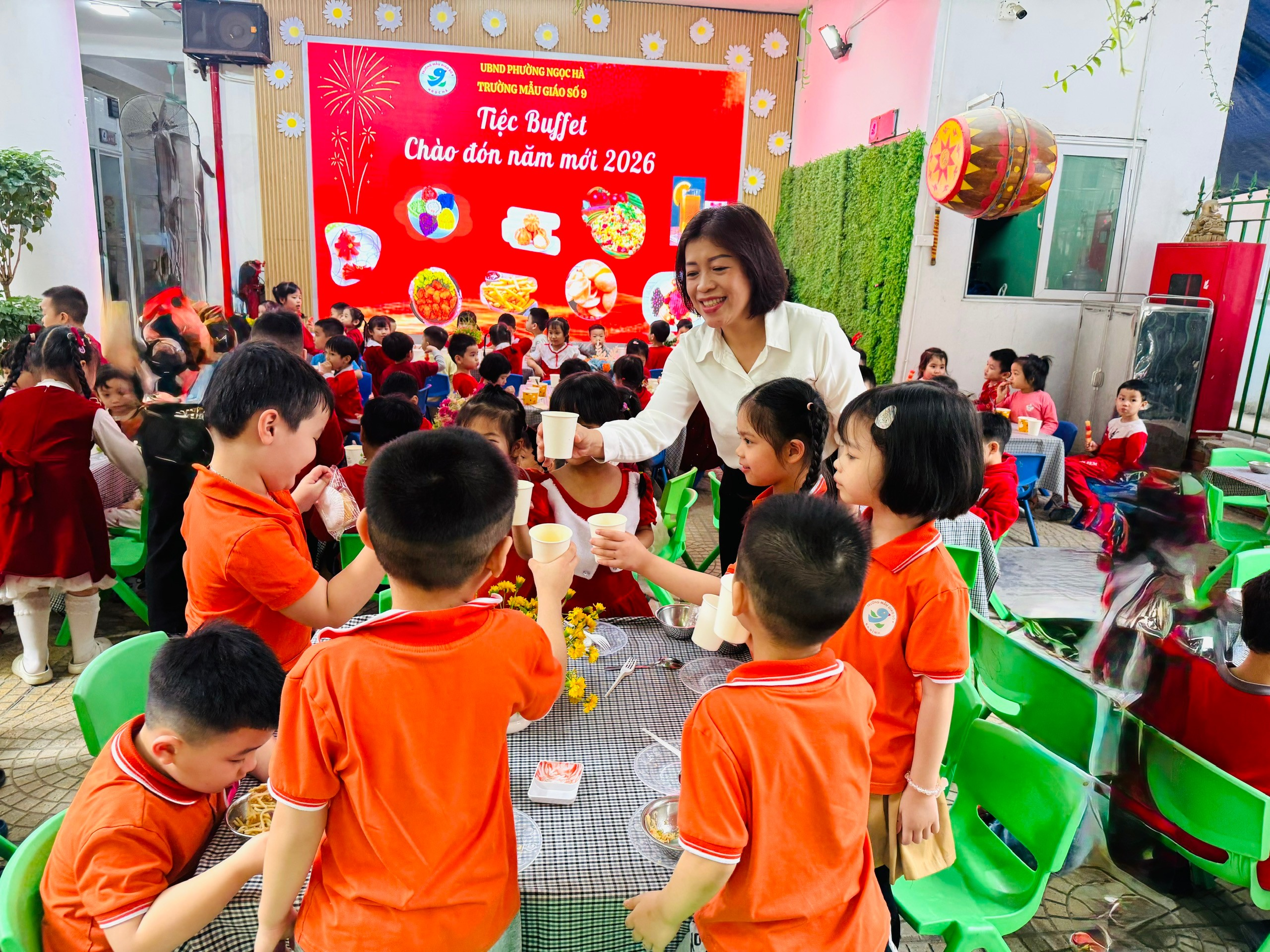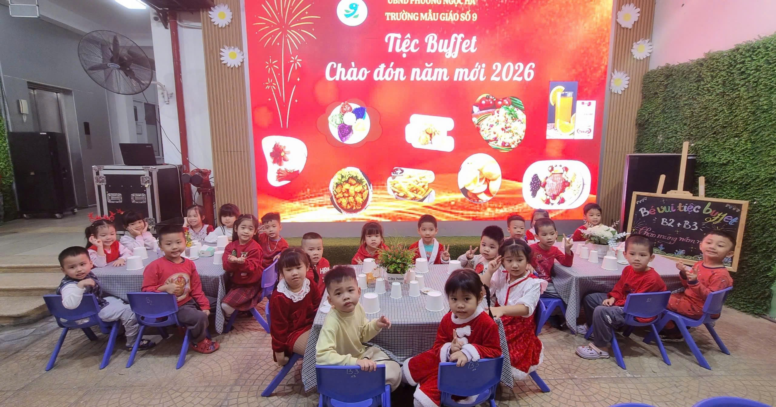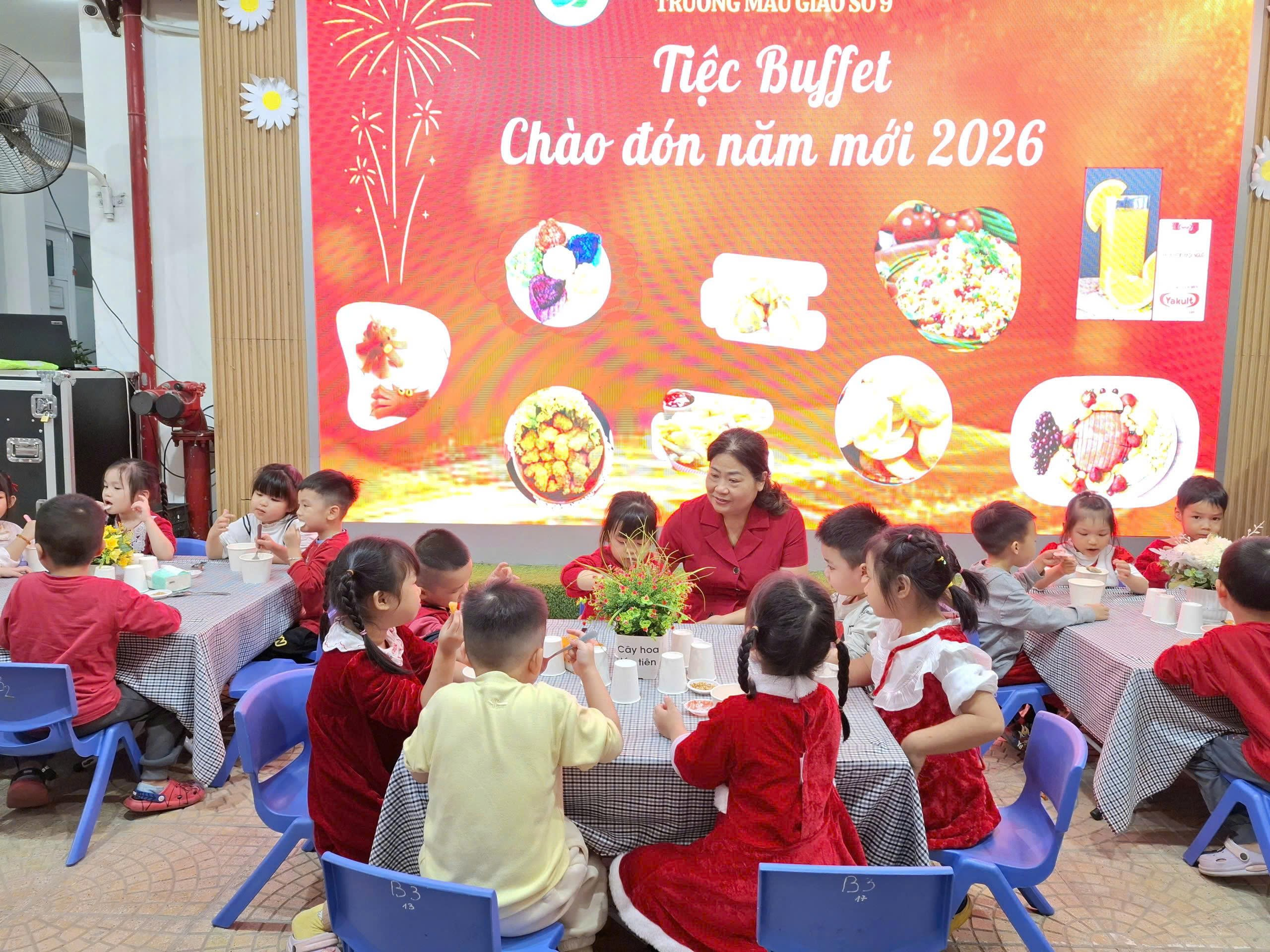 Tiệc buffet Chào năm mới 2026 không chỉ mang đến niềm vui cho các bé mà còn thể hiện sự quan tâm, chăm sóc toàn diện của Trường Mẫu giáo số 9 và gia đình trong công tác chăm sóc, giáo dục trẻ.