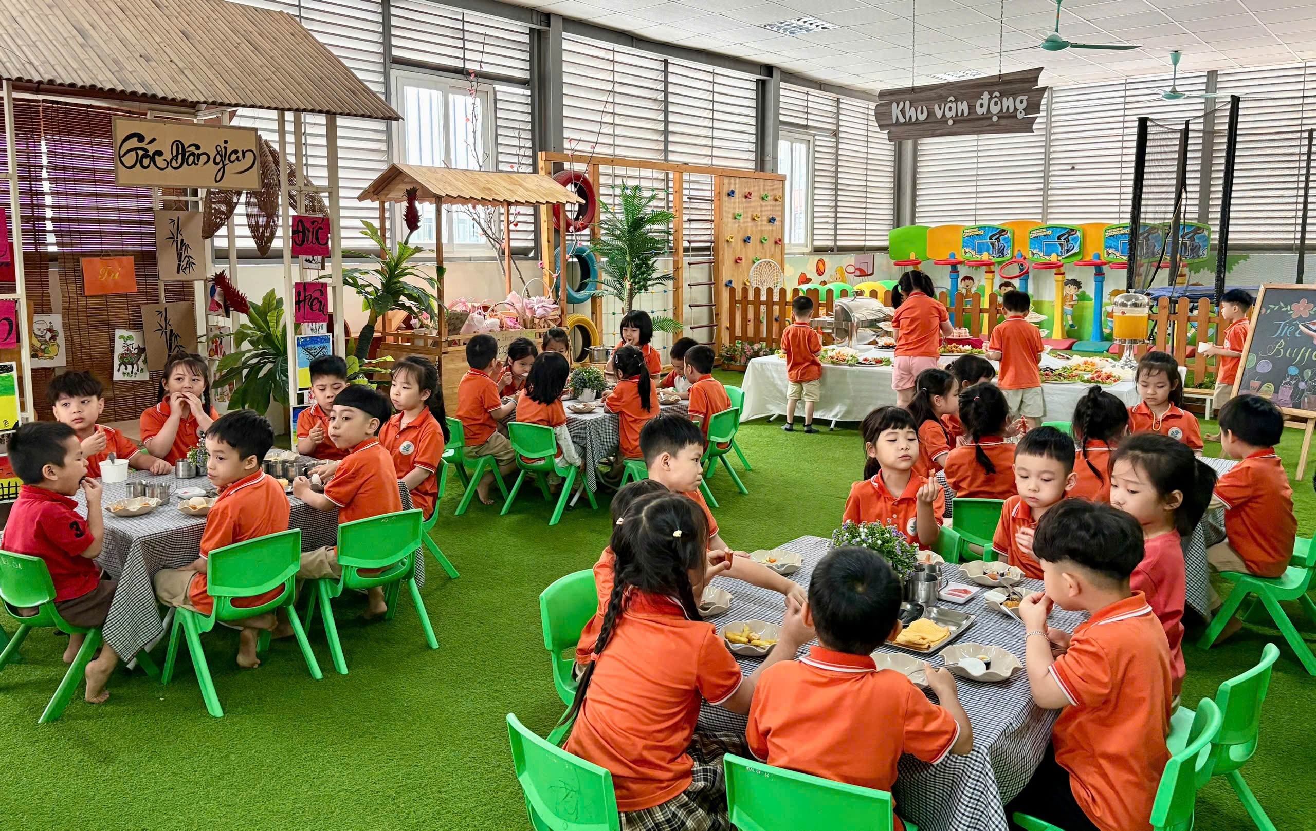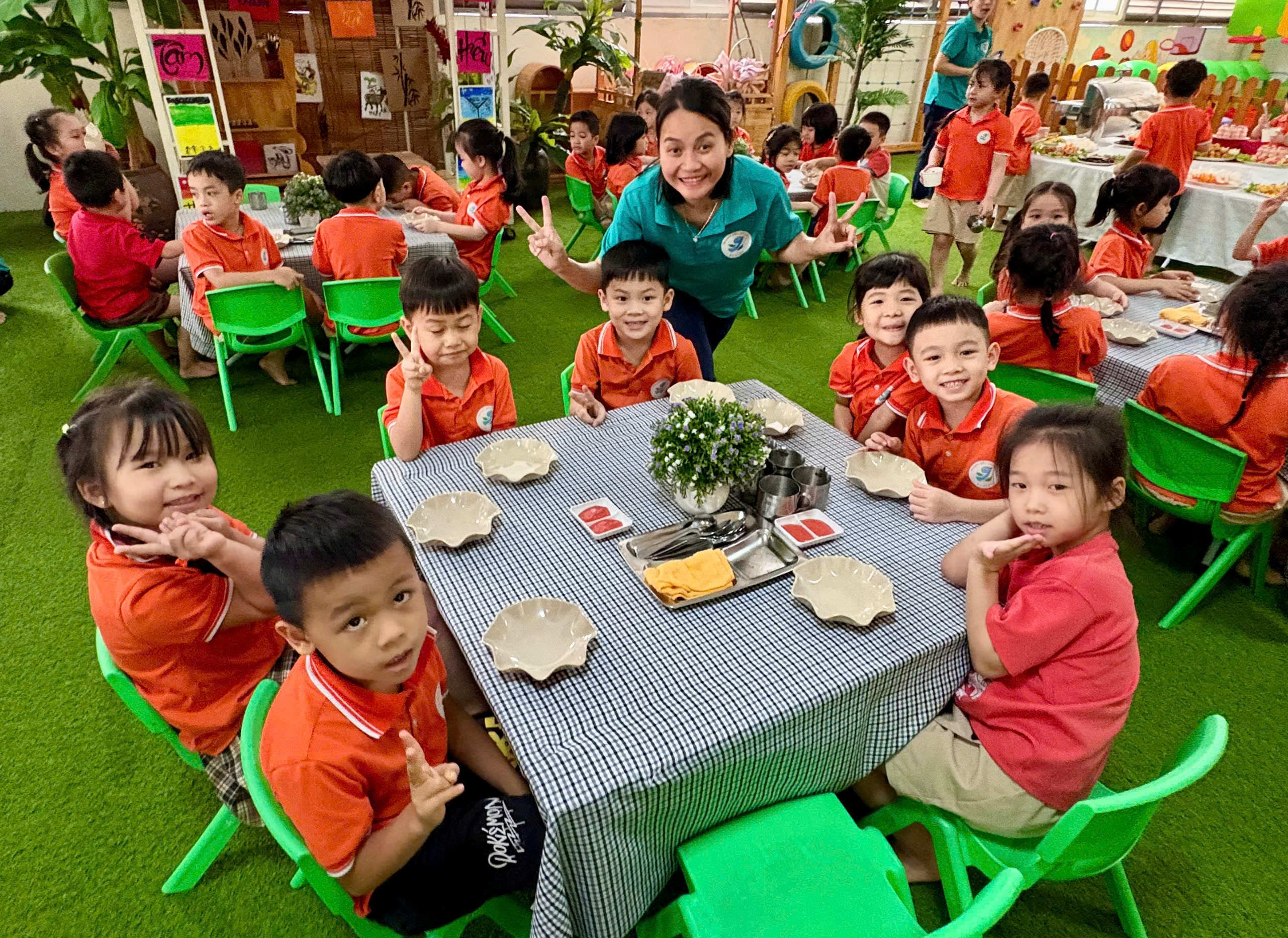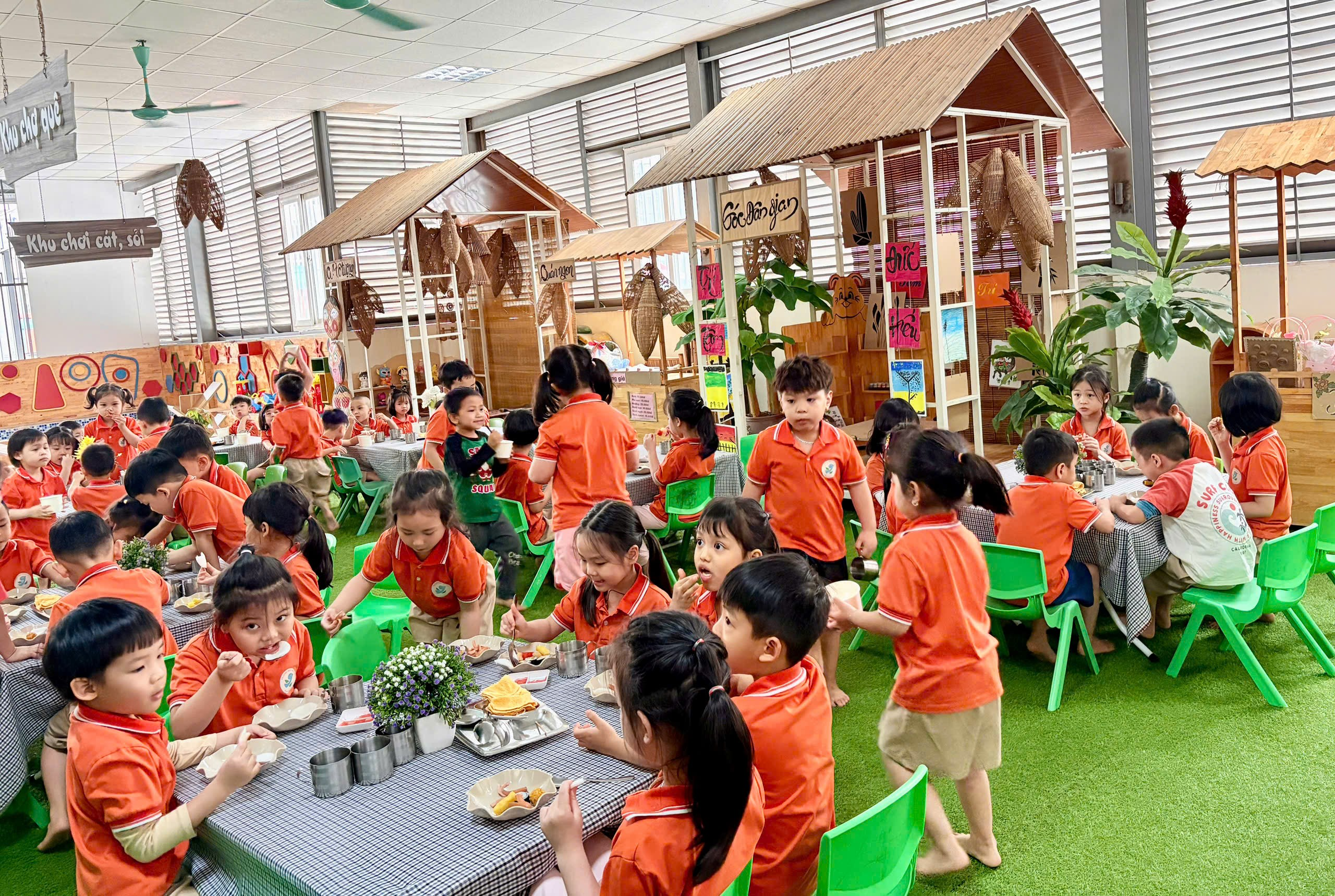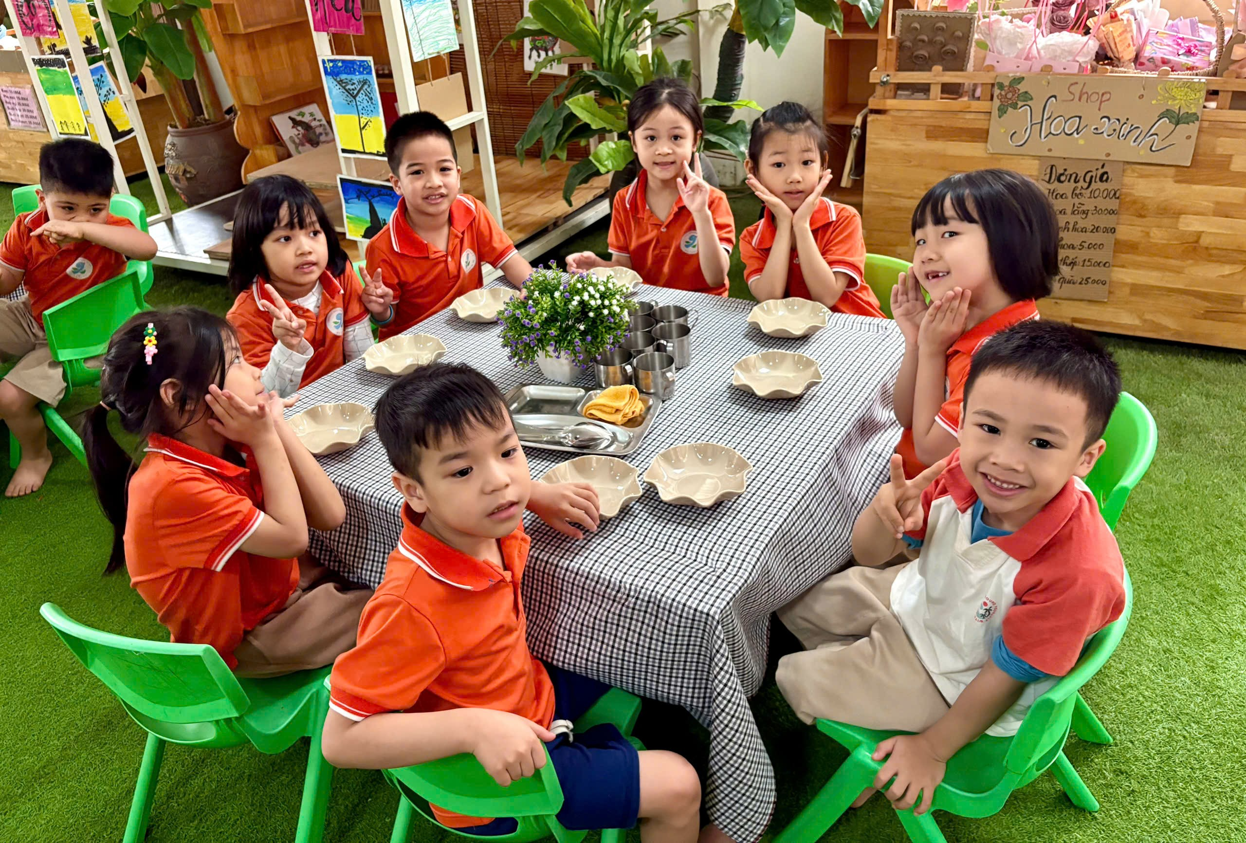 Không khí buổi tiệc tràn ngập tiếng cười. Các bé tỏ ra rất thích thú khi được cùng nhau thưởng thức món ăn, trò chuyện và trải nghiệm như một “bữa tiệc thật sự”. Đây cũng là cơ hội để các con thêm gắn bó với bạn bè và cô giáo.
