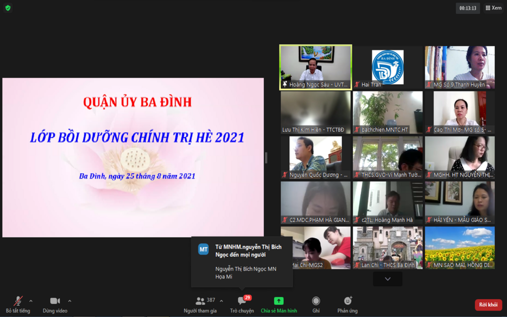 Toàn thể CBGVNV trường Mẫu giáo Số 9 tham gia lớp Bồi dưỡng chính trị hè 2021 do UBND quận Ba Đình tổ chức