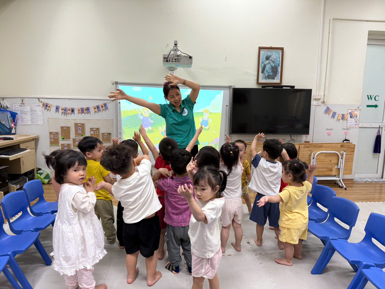 Ngay từ đầu tuần, không khí tại các lớp học đã trở nên sôi nổi với những câu chuyện, hình ảnh trực quan về Trái Đất xanh – sạch – đẹp. Mở đầu chuỗi hoạt động, các bé đã cùng nhau tìm hiểu về ý nghĩa của Giờ Trái Đất thông qua những thước phim sinh động và những bài giảng gần gũi của cô giáo.