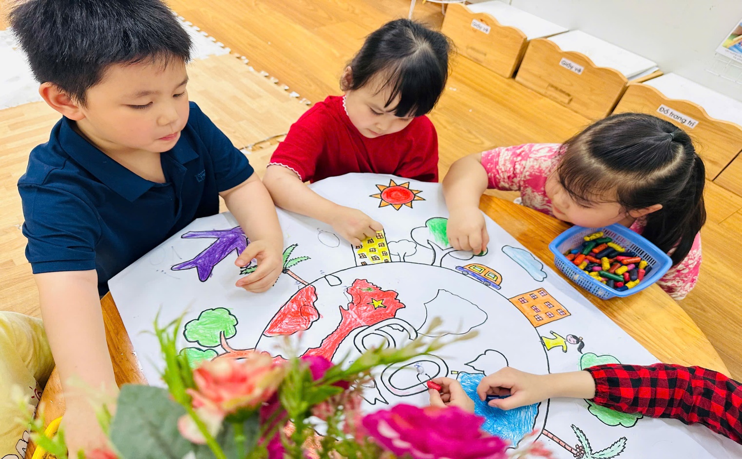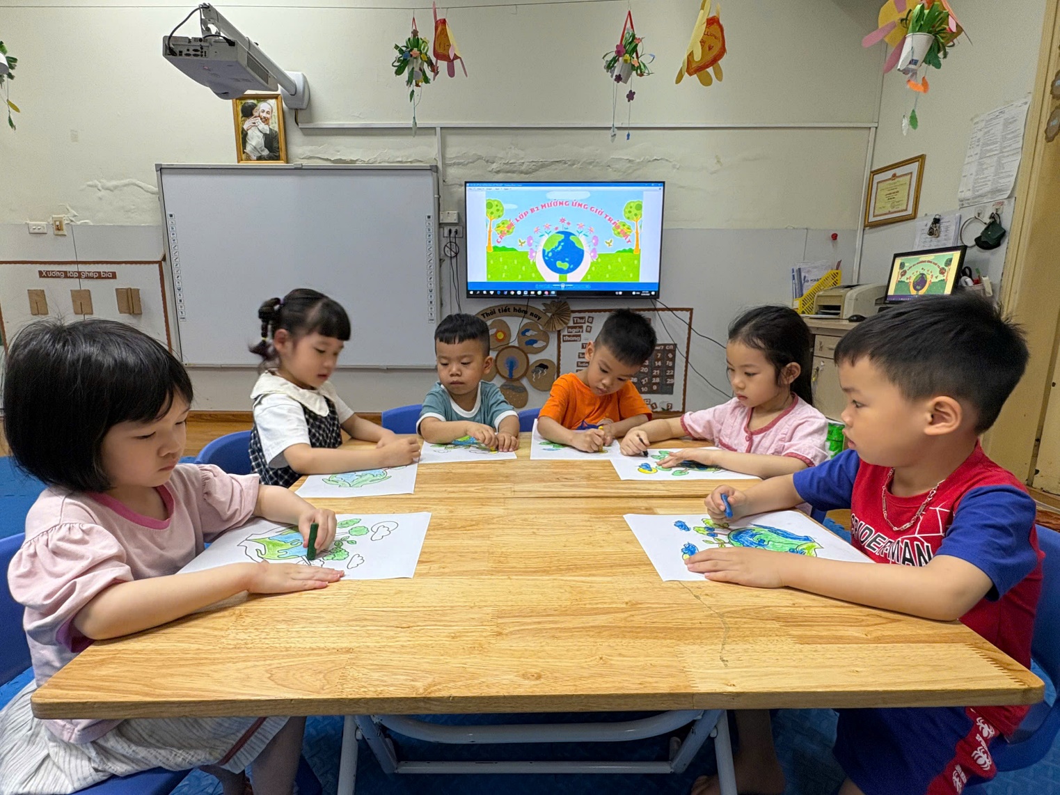 Các bé lớp MGB C1, MGN, B2, MGL A1 tô màu tranh poster hành tinh xanh