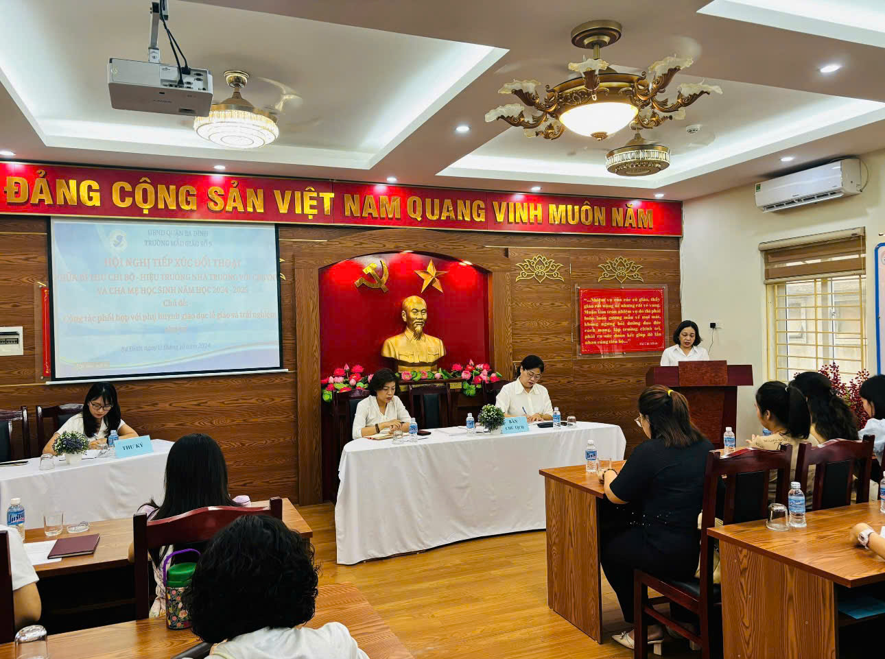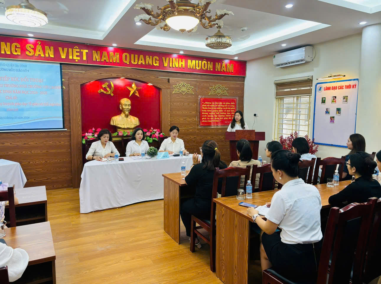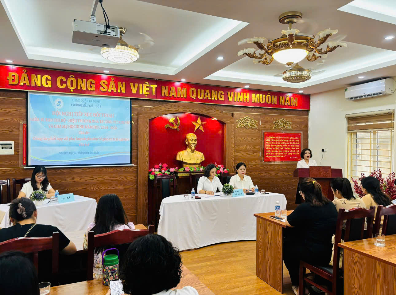 Thực hiện Kế hoạch số 280/KH-UBND ngày 25/9/2024 của UBND quân Ba Đình về tổ chức hội nghị tiếp xúc, đối thoại trực tiếp giữa Trưởng phòng GD và ĐT quận với đội ngũ cán bộ quản lý, giáo viên, nhân viên, phụ huynh học sinh và học sinh toàn ngành, người đứng đầu cấp ủy, hiệu trưởng, Giám đốc trung tâm GDNN- GDTX quận với đội ngũ giáo viên, nhân viên, phụ huynh học sinh và học sinh tại các trường Mầm non, Tiểu học, THCS, Trung tâm GDNN- GDTX trên địa bàn quận năm học 2024- 2025.