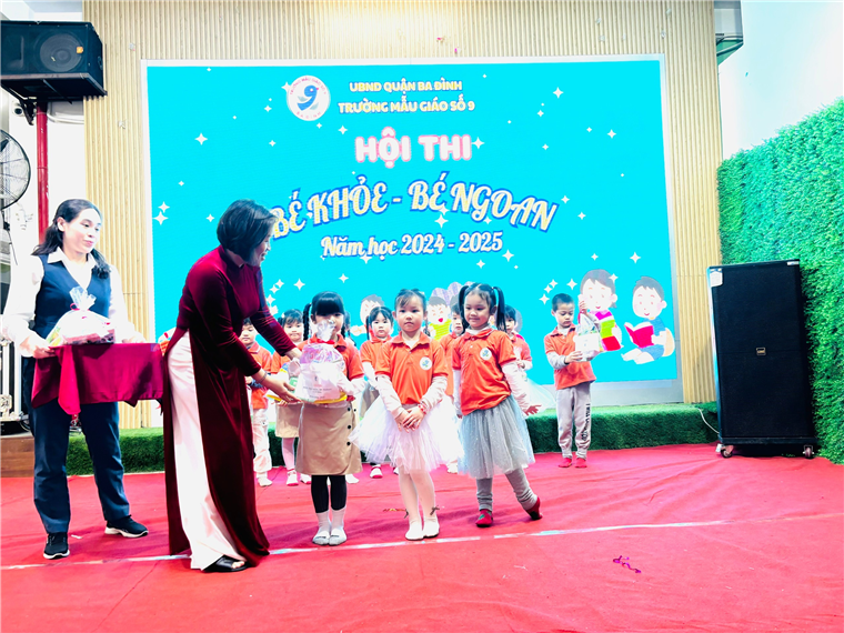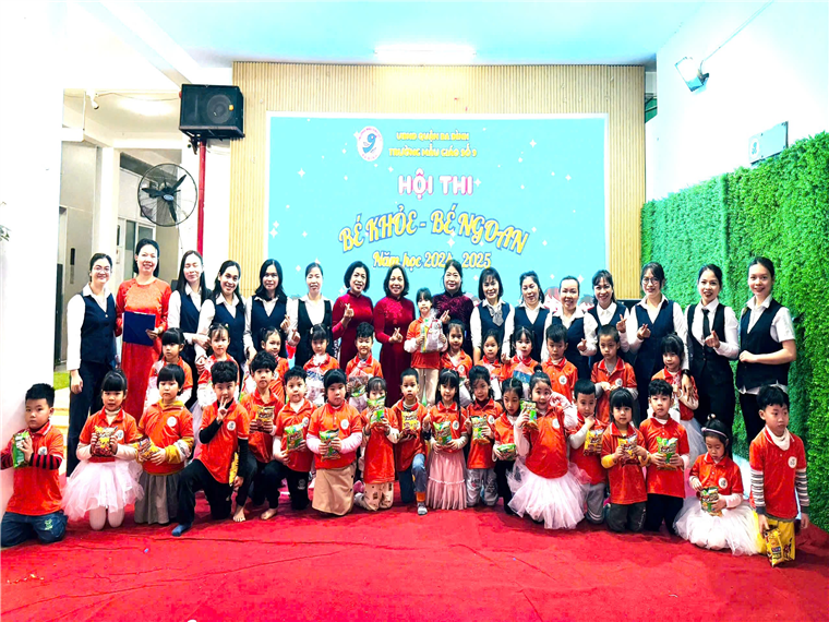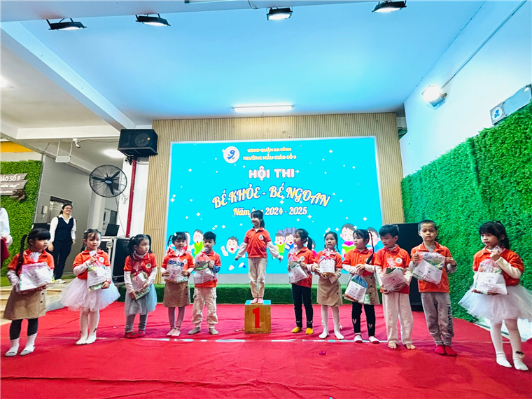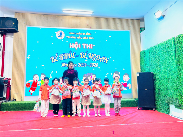 Liên hoan “Bé khỏe- Bé ngoan” tại trường Mẫu giáo Số 9 đã thành công rực rỡ. Một hoạt động bổ ích, không chỉ giúp trẻ củng cố kiến thức mà còn phát triển nhiều kỹ năng quan trọng, góp phần vào sự phát triển toàn diện của trẻ. Chúc các bé trong đội thi trường Mẫu giáo Số 9 sẽ tham gia liên hoan “Bé khỏe- Bé ngoan” cấp Quận đạt kết quả tốt.