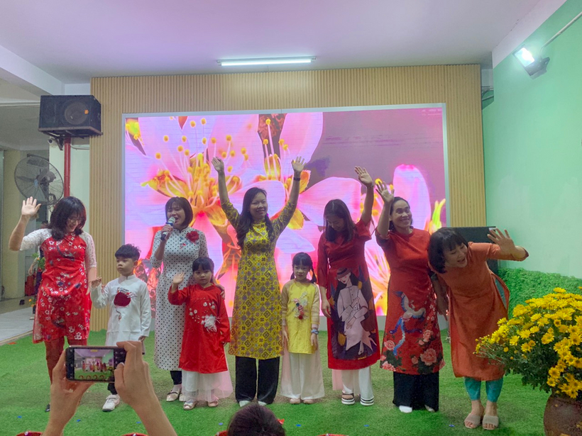 Các con rất vui, hào hứng, tự tin lên trình diễn áo dài.