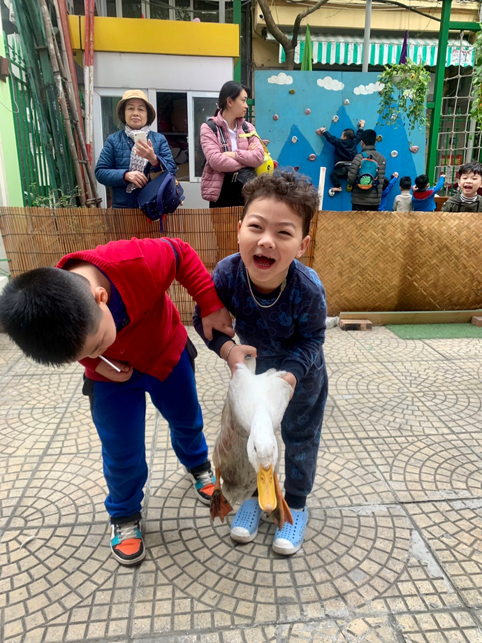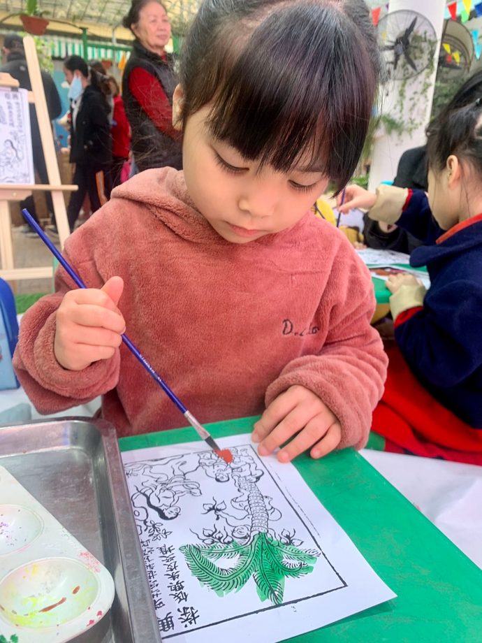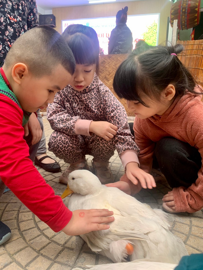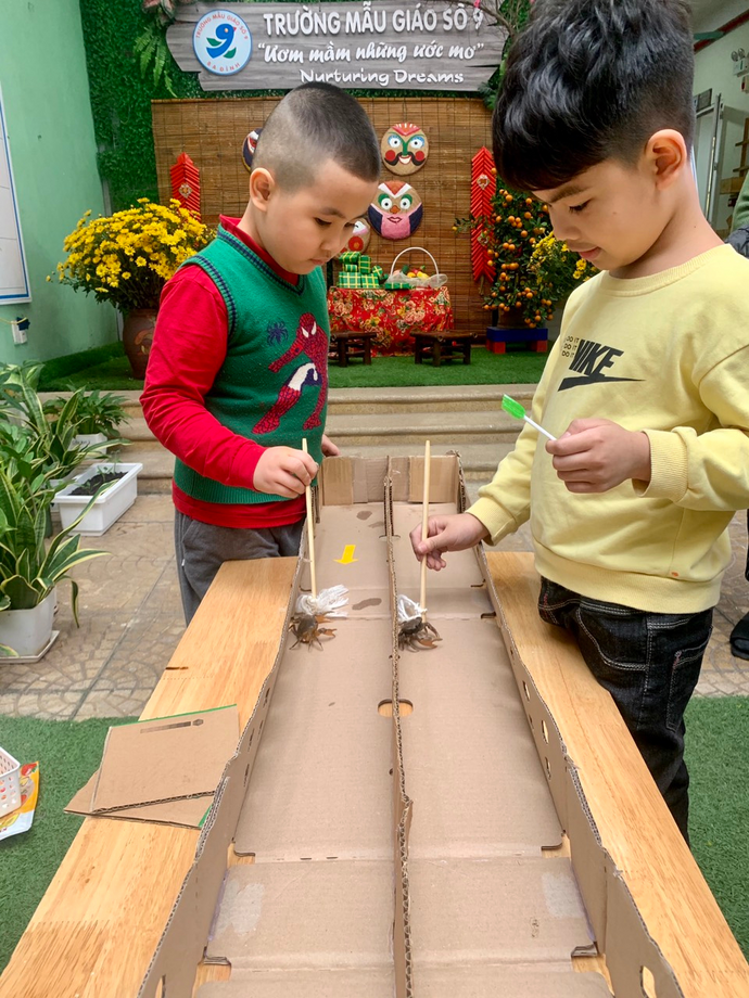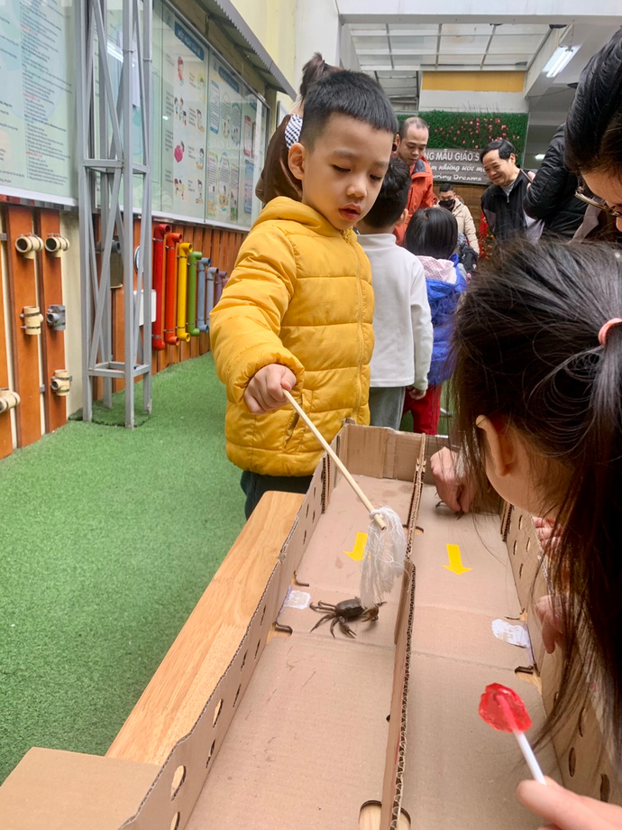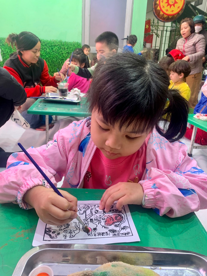 Ngày thứ 5 (16/2/2023), các con giao lưu với các bạn, các em, trong trường qua chơi các trò chơi dân gian như đua cua, bắt vịt, tô tranh dân gian, đồ chữ thư pháp, in tranh Đông Hồ,... Niềm vui, sự háo hức, phấn khởi thể hiện trong từng ánh mắt và nụ cười của các con.