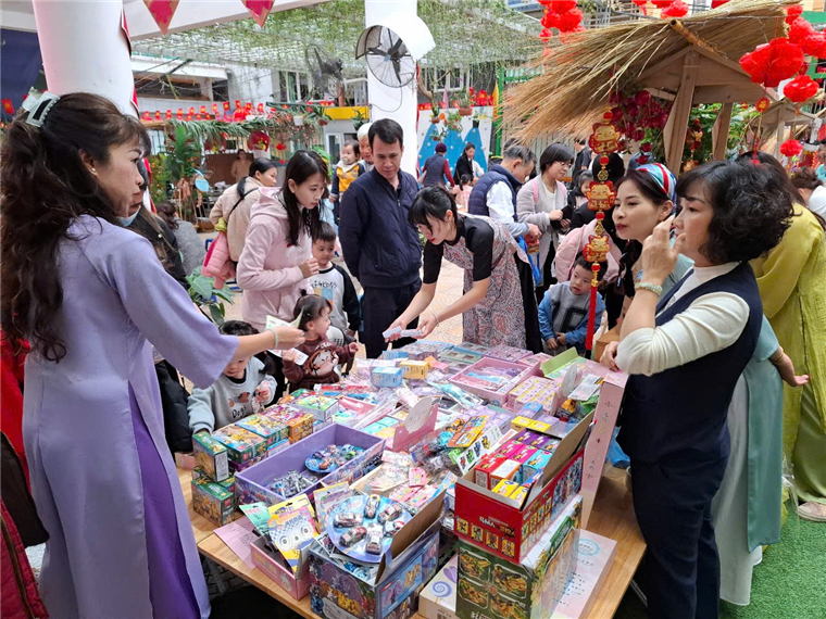 Hội chợ Xuân đã tạo ra một sân chơi bổ ích, là cơ hội để giáo dục cho trẻ về văn hoá truyền thống, phong tục tập quán của quê hương khi các con được cùng bố mẹ trải nghiệm mua sắm tại các gian hàng.